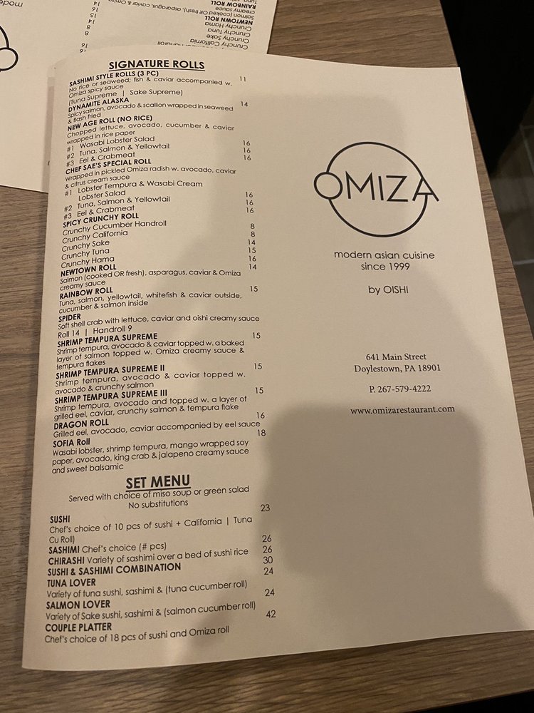 Introducing Omiza Restaurant, a classy and upscale establishment located at 641 N Main St in Doylestown, PA. Specializing in soup and salads, Omiza offers a wide variety of dishes with vegan options available. The menu includes delicious salads like Avocado Oishi and Poke Salad, flavorful sides like Kimchi Trio and Steamed Vegetables, and satisfying soups like Coconut Chicken and Kimchi Stew. Customers rave about the fresh and tasty lunch specials, with one patron praising the brothy noodles as one of the best dishes they've ever had. The restaurant's clean and well-designed interior, along with excellent service, create a relaxing atmosphere for diners to enjoy their meal. Whether you're craving Korean fusion, sushi, or Thai cuisine, Omiza Restaurant is a must-visit spot for a delightful dining experience.